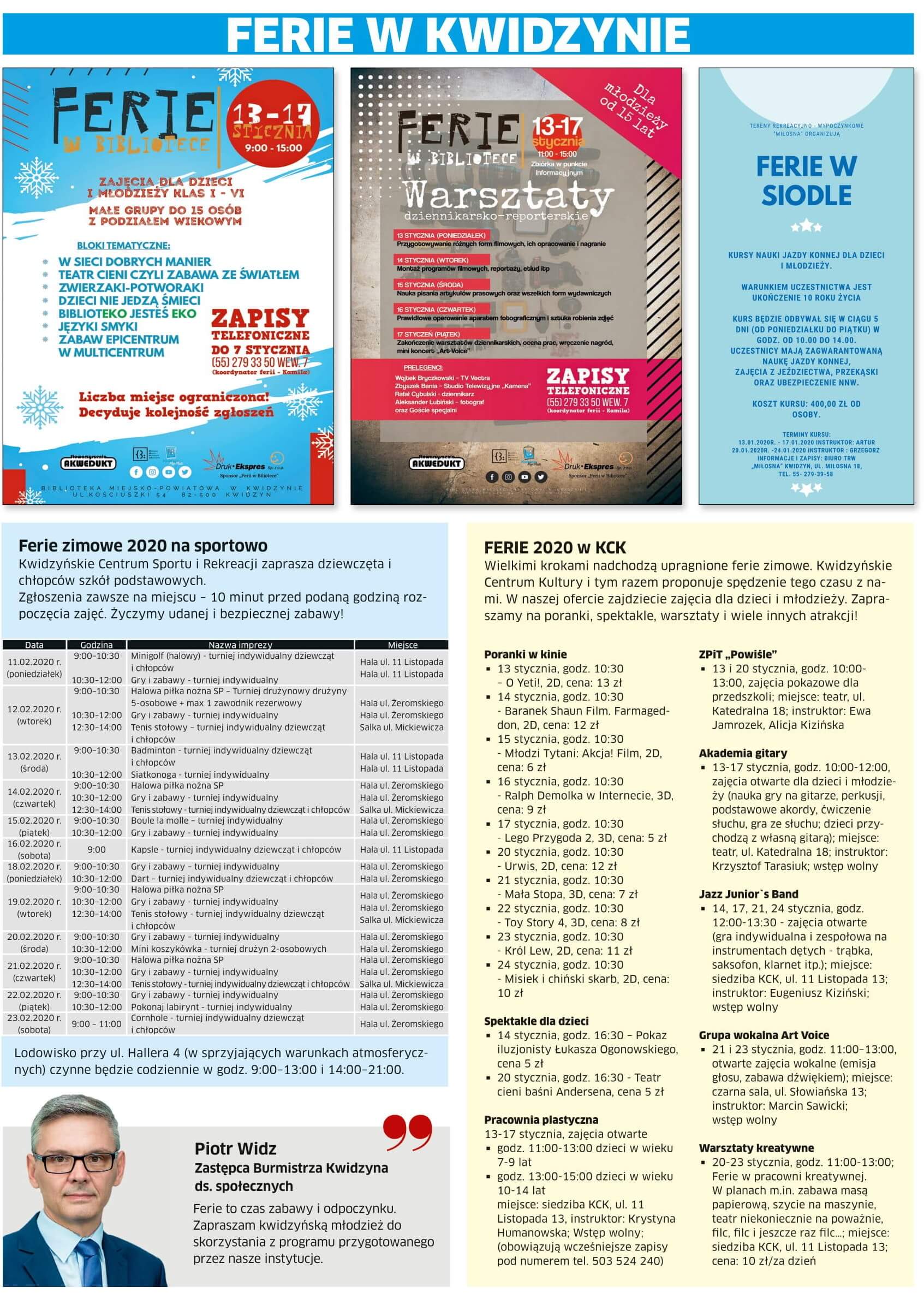 Oferta ferii zimowych 2020 Zamku w Kwidzynie