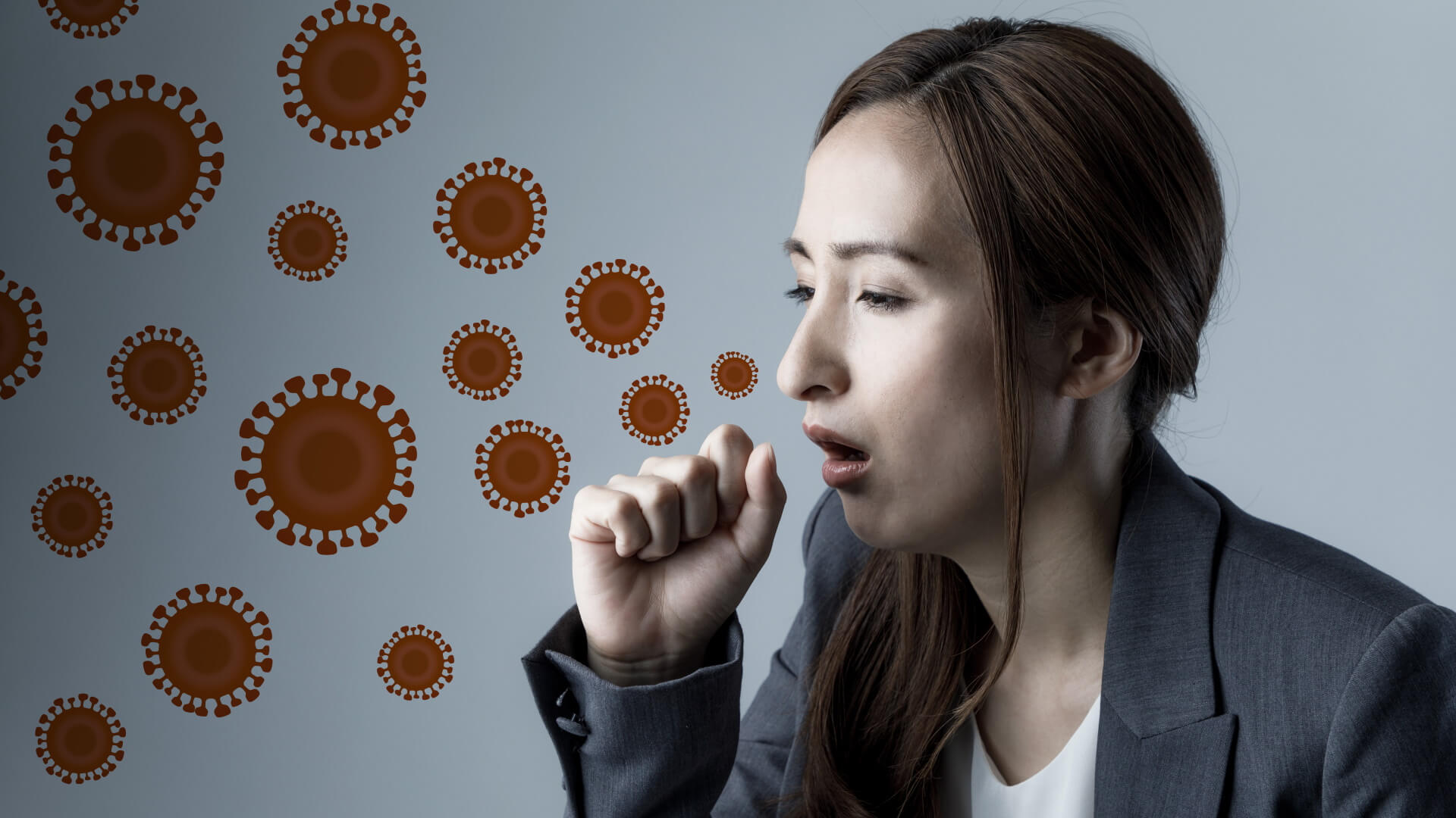 Ilustracja kobiety roznoszącej wirusa przez kaszel