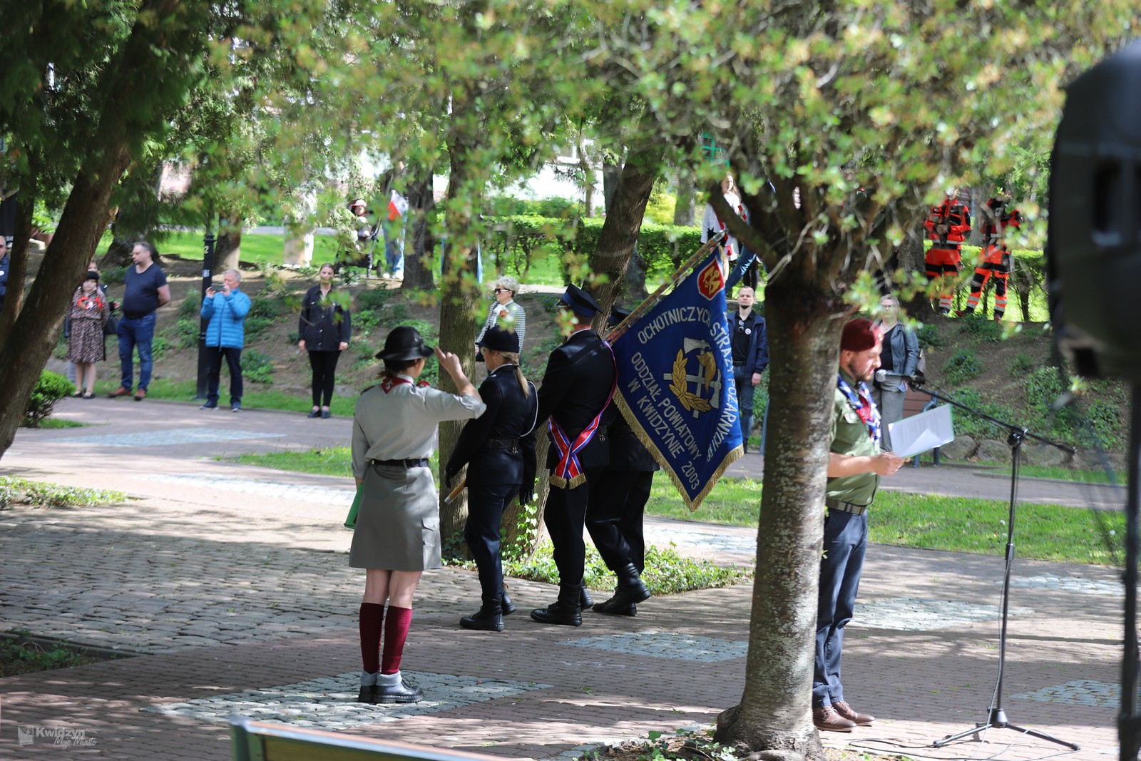 Uroczystość rozpoczęła się tradycyjnie: wprowadzeniem sztandarów, odśpiewaniem hymnu państwowego i złożeniem kwiatów. Nie zabrakło też wzruszających akcentów — jednym z nich był piękny występ muzyczny w wykonaniu „Spomsiaków”, przygotowanych przez Pania Milenę Kossak. Historyczny kontekst wydarzeń z 1791 roku przybliżyła zebranym harcmistrzyni Wiktoria Wesołowska w okolicznościowym referacie.