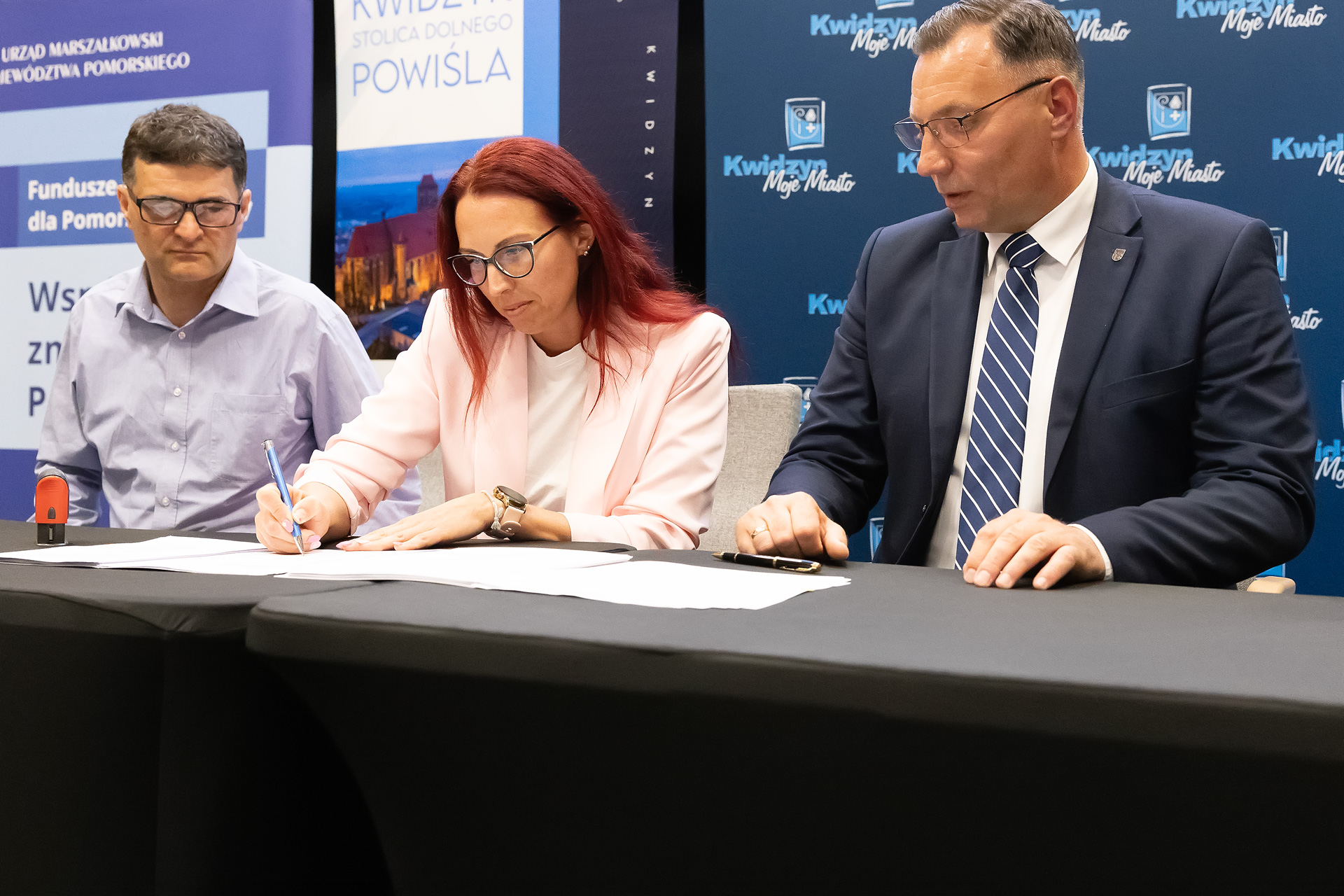 Uroczyste podpisanie odbyło się z udziałem Wicemarszałka Województwa Pomorskiego Marcina Skwierawskiego oraz Burmistrza Kwidzyna Sebastiana Kasztelana, a także przedstawicieli gmin i przyszłych beneficjentów.