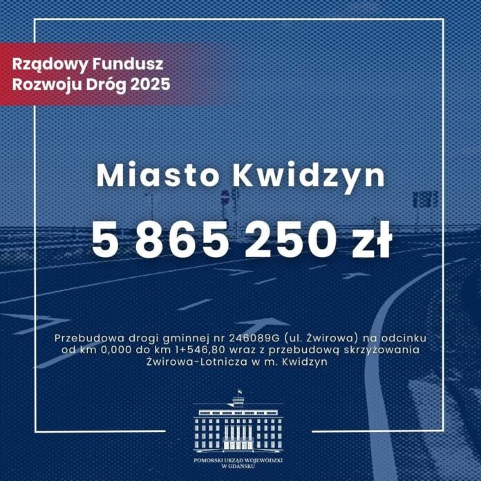 Z radością informujemy, że po wielu latach starań Miasto Kwidzyn otrzymało dofinansowanie z Rządowego Funduszu Rozwoju Dróg (RFRD) na realizację przebudowy ulicy Żwirowej.