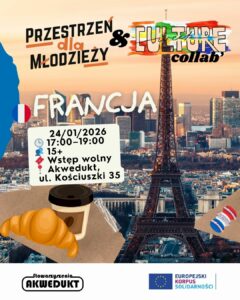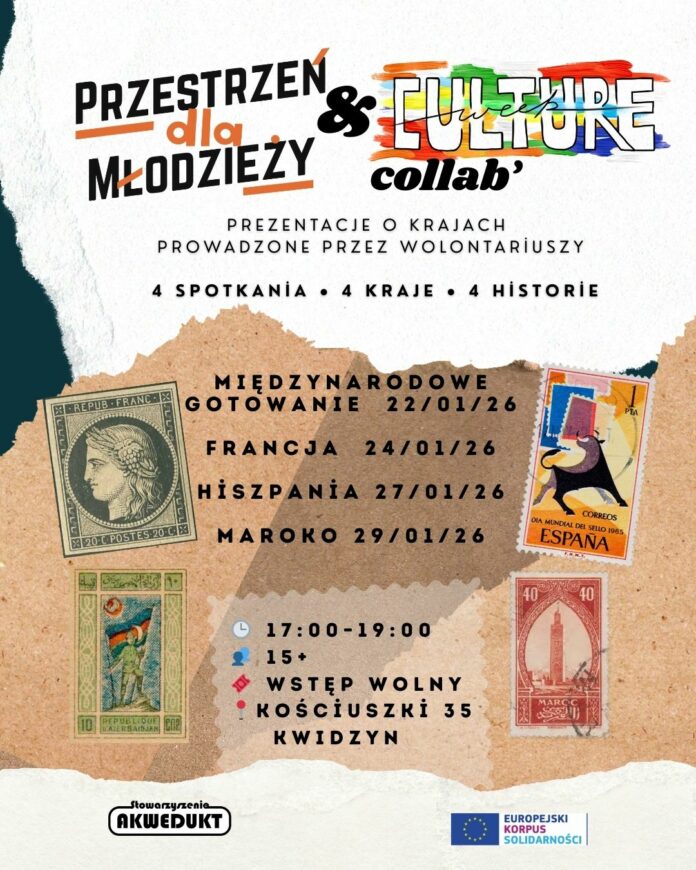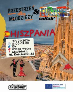 Masz ochotę na małą ucieczkę od codzienności? Wpadnij do Akweduktu na Przestrzeń dla Młodzieży&Culture Week Collab!Nasi zagraniczni wolontariusze zabiorą Cię w podróż przez 4 fascynujące kraje. Zero nudnych wykładów – tylko autentyczne historie, kultura, ciekawostki i świetny klimat!