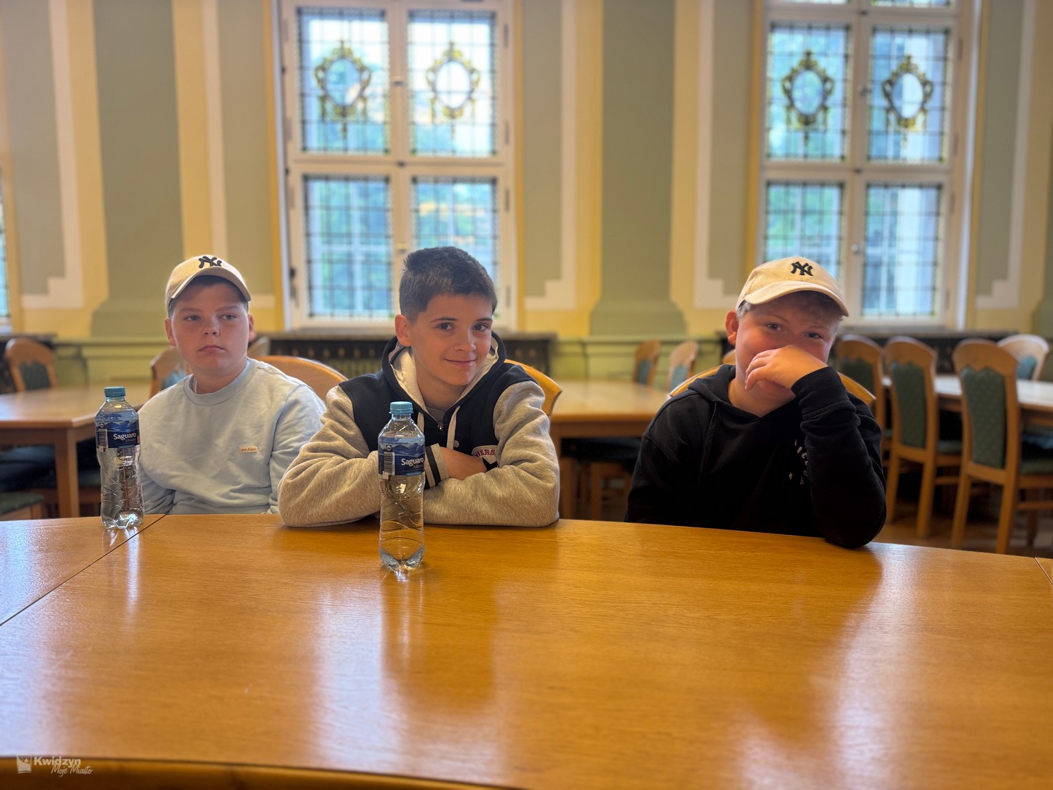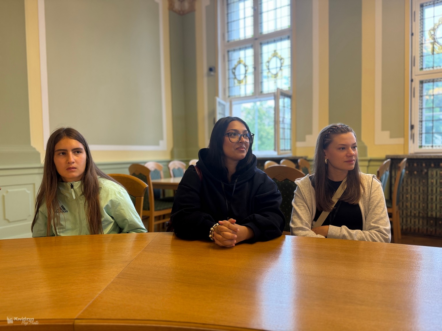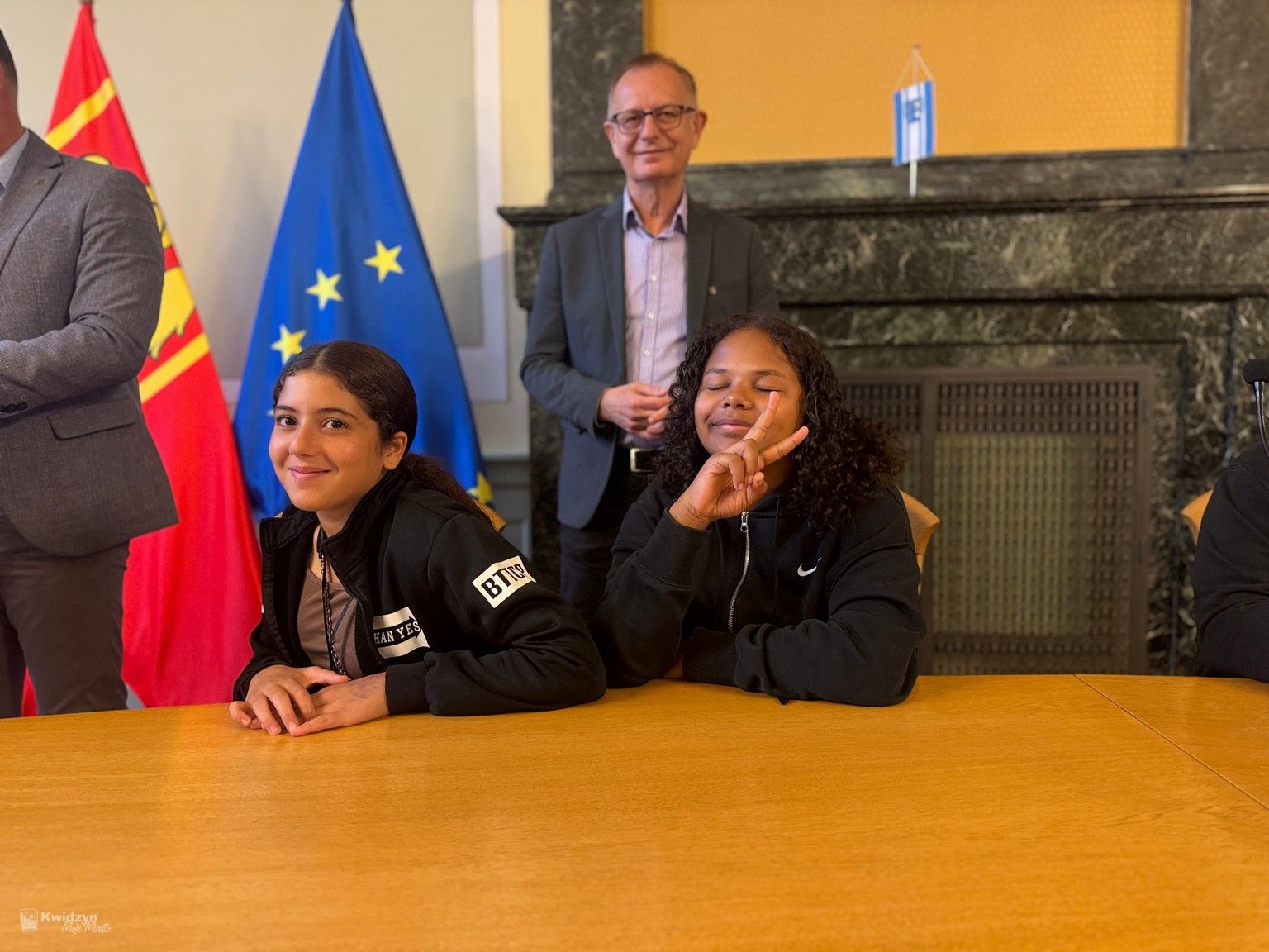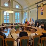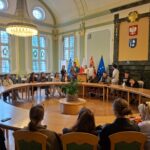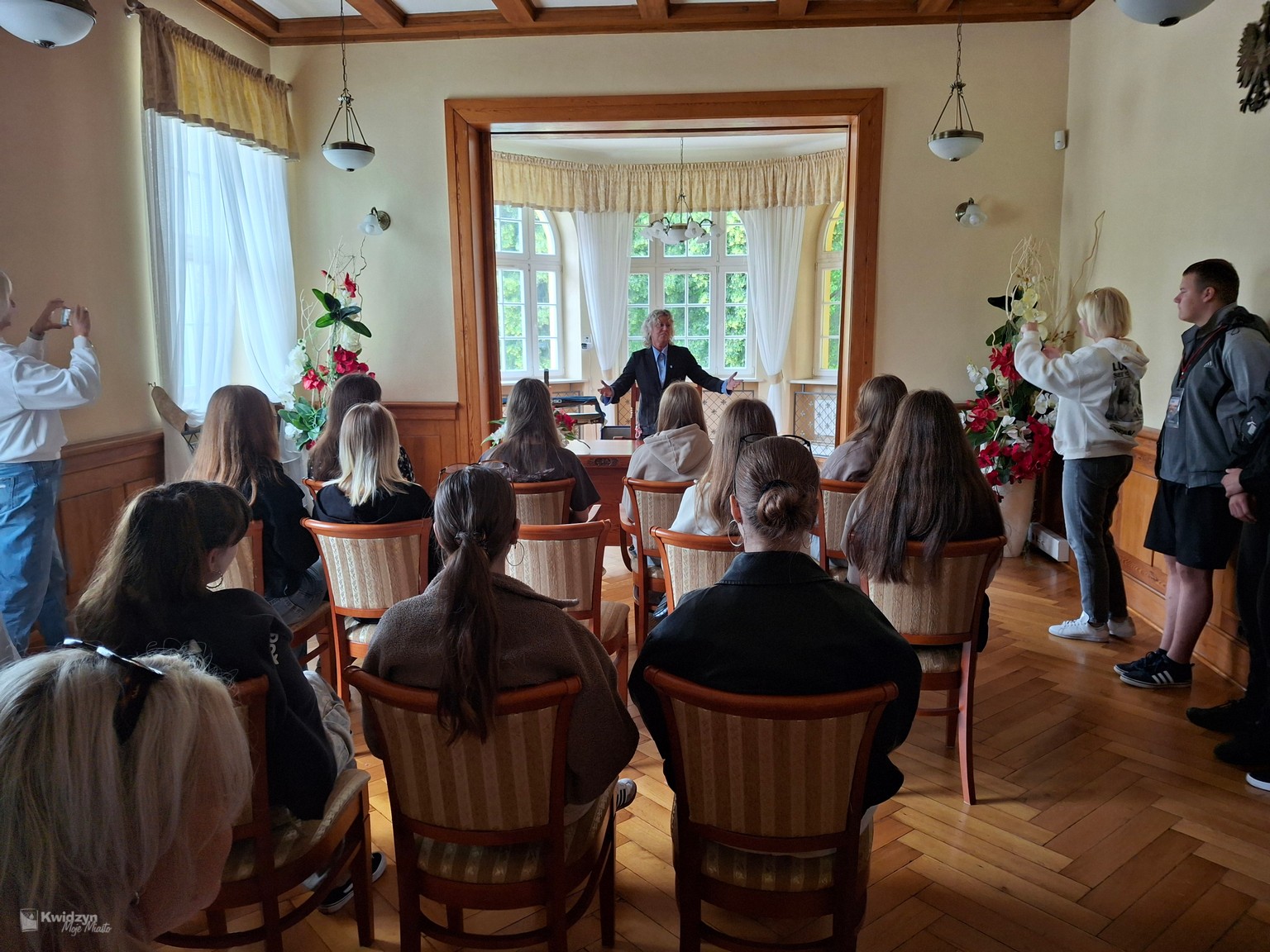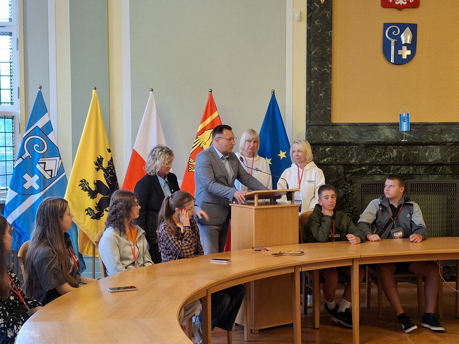 Nasi goście spotkali się również z Burmistrzem Miasta Kwidzyna – Sebastianem Kasztelanem, który chętnie opowiedział o zasadach funkcjonowania lokalnego samorządu i odpowiadał na pytania zadawane przez młodzież. Po wizycie w gabinecie burmistrza uczestnicy zwiedzili salę narad Rady Miejskiej oraz salę ślubów. Na pamiątkę tego miłego spotkania wszyscy uczestnicy i opiekunowie otrzymali okolicznościowe upominki.