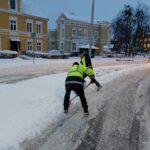 Do likwidacji śliskości wykorzystywana jest mieszanka soli drogowej i piasku.