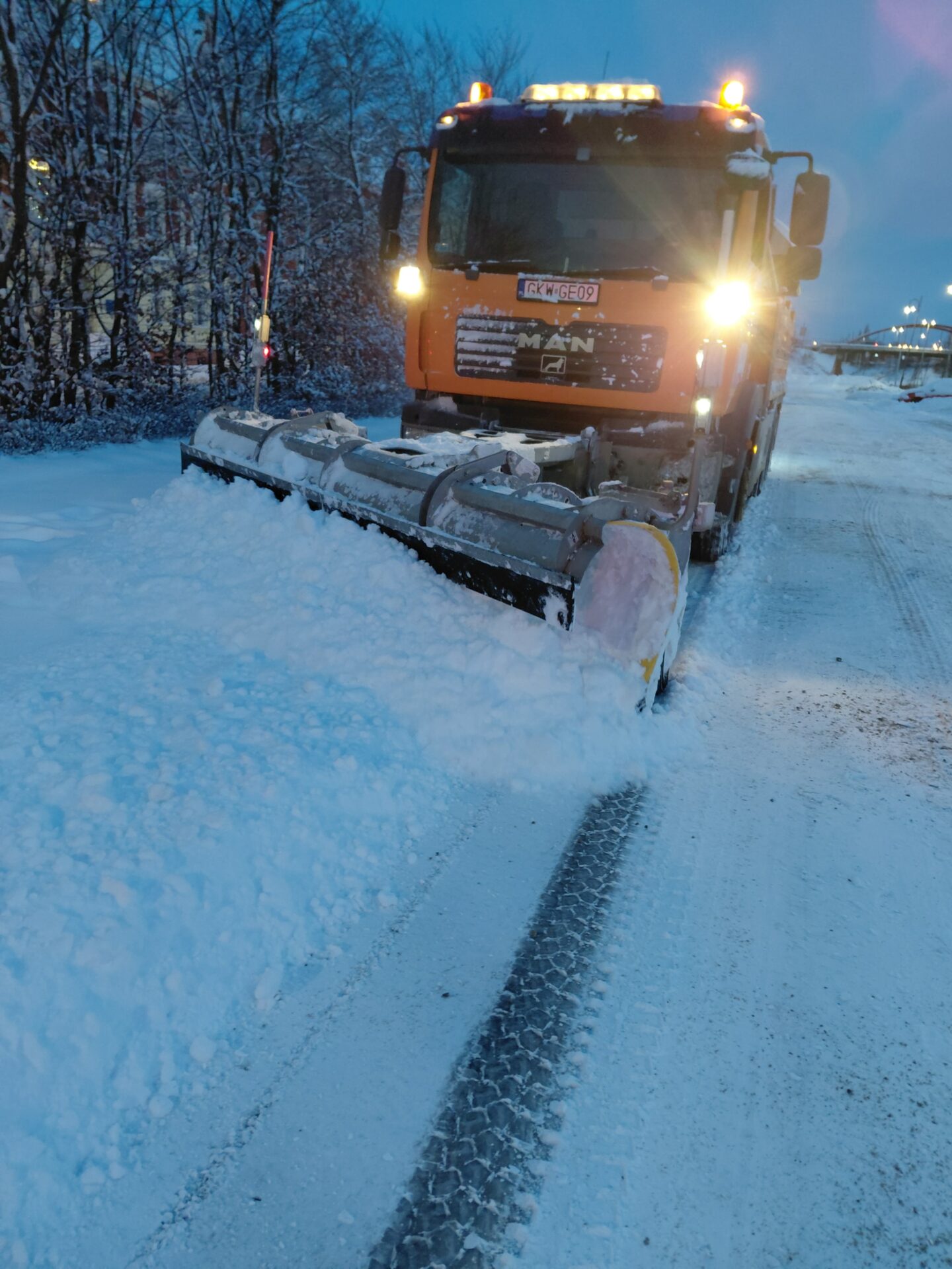 Prosimy, aby nie usuwać śniegu z terenów prywatnych, posesji, chodników i parkingów na drogi wspólne. Zgarnięty śnieg należy pozostawiać przy krawędzi jezdni, tak aby nie utrudniał pracy służbom i nie stwarzał zagrożenia dla kierowców.
