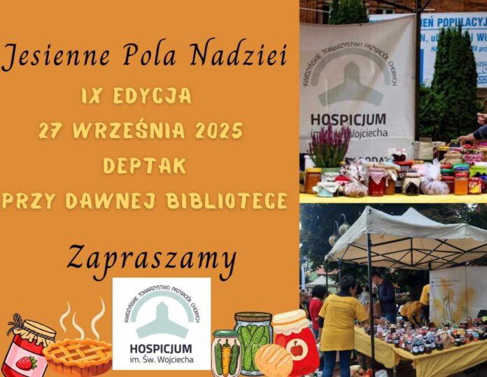 Kwidzyńskie Towarzystwo Przyjaciół Chorych –Hospicjum im. Św. Wojciecha serdecznie zaprasza wszystkich mieszkańców na wyjątkowe wydarzenie „Jesienne Pola Nadziei”, które odbędą się w tą sobotę na deptaku przy dawnej Bibliotece w Kwidzynie!