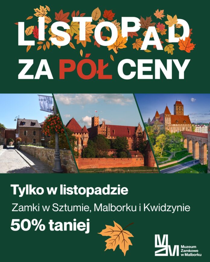 Od 2 do 30 listopada 2025 bilety do zamków w Malborku, Sztumie i Kwidzynie – 50% taniej