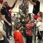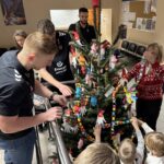 Zawodnicy chętnie pomagali wieszając ozdoby na wyższych gałązkach i dzieląc z dziećmi radość ze wspólnie tworzonego świątecznego klimatu.