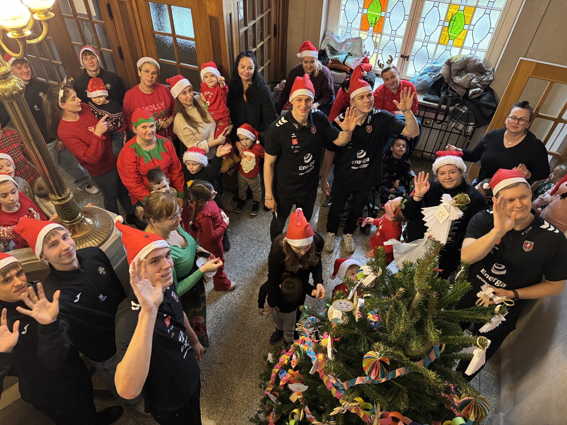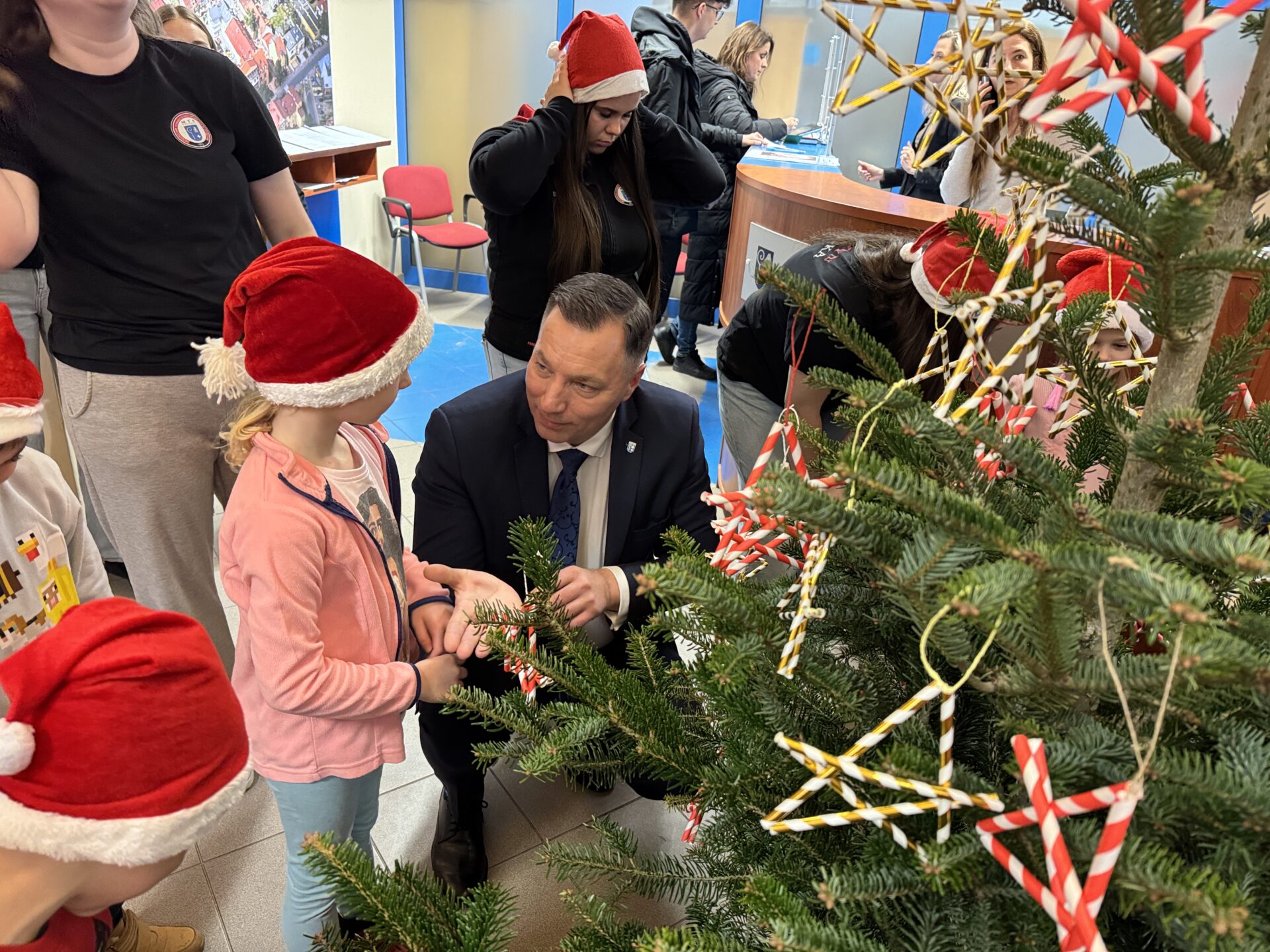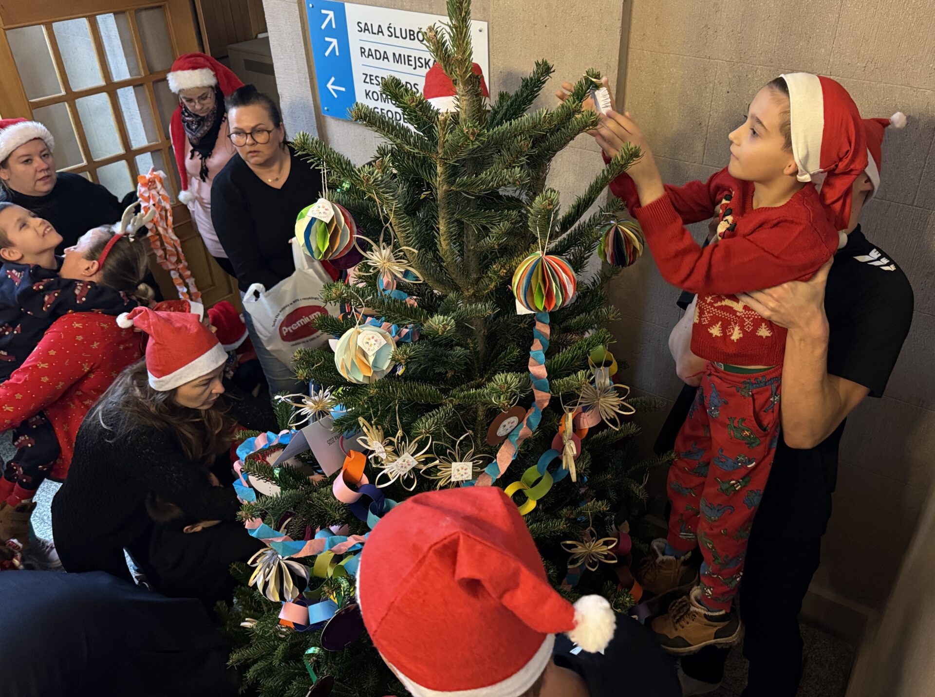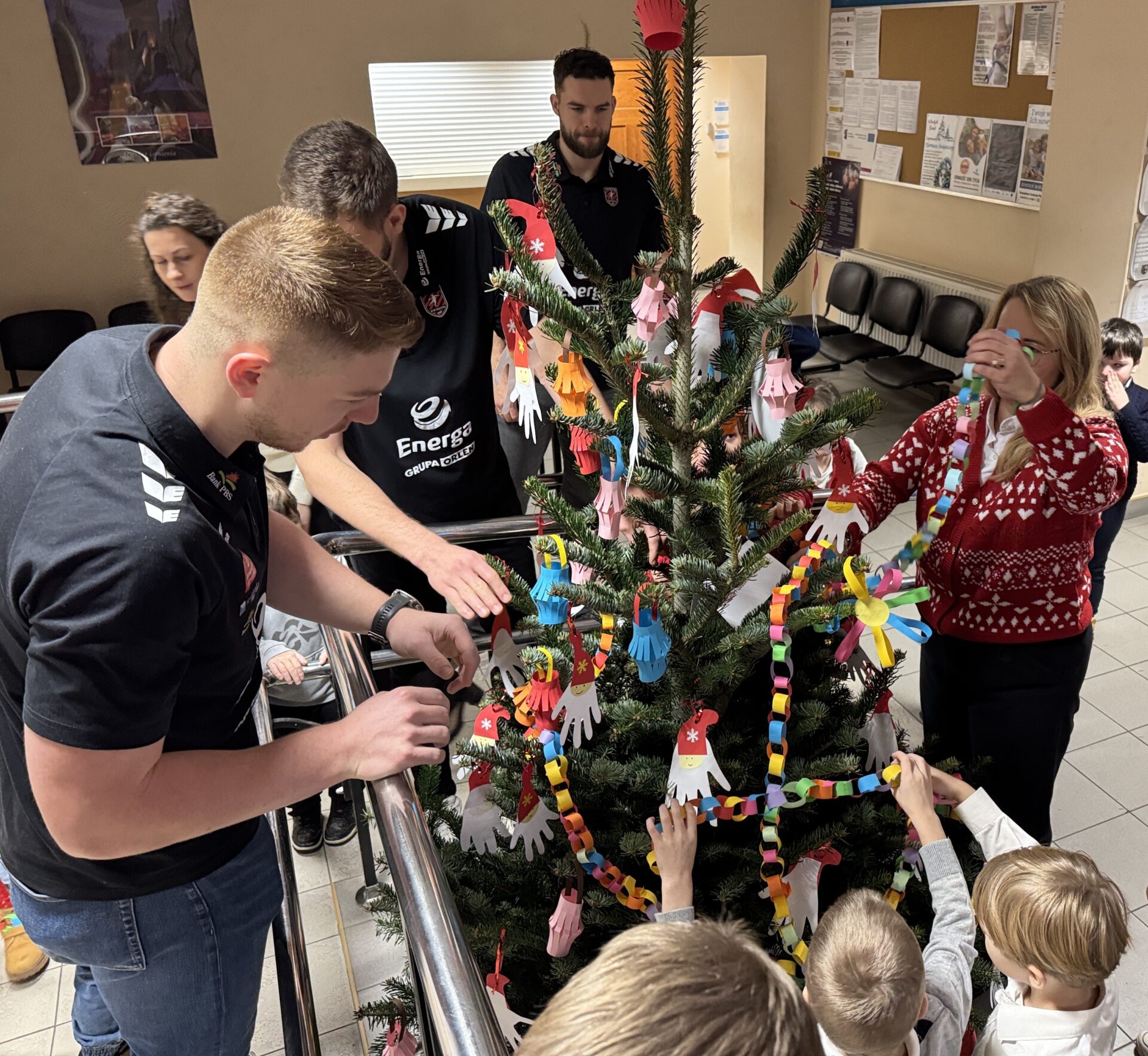Zawodnicy chętnie pomagali wieszając ozdoby na wyższych gałązkach i dzieląc z dziećmi radość ze wspólnie tworzonego świątecznego klimatu.