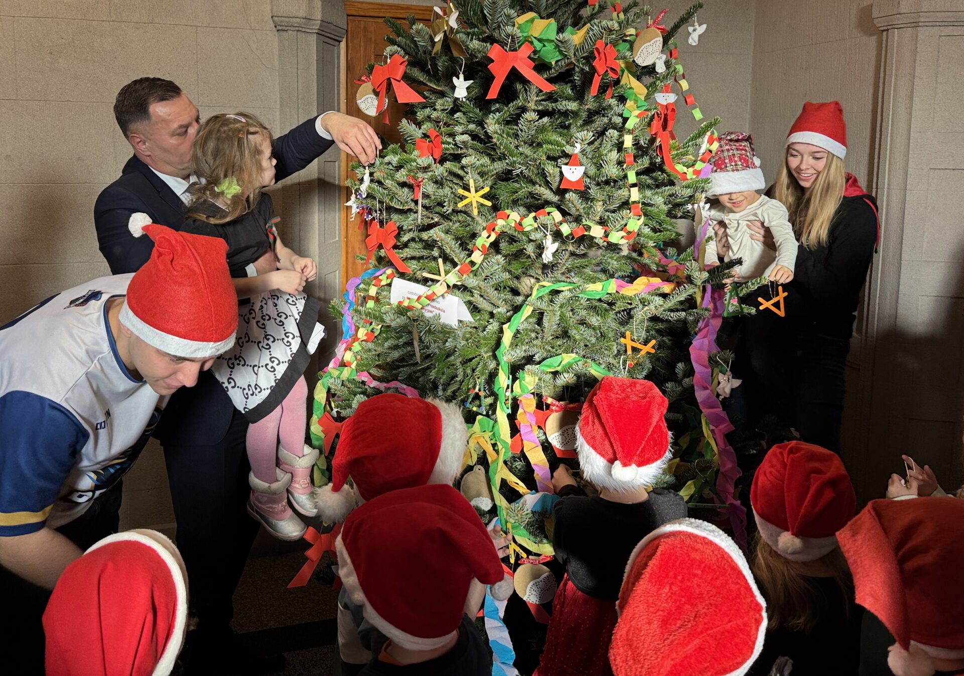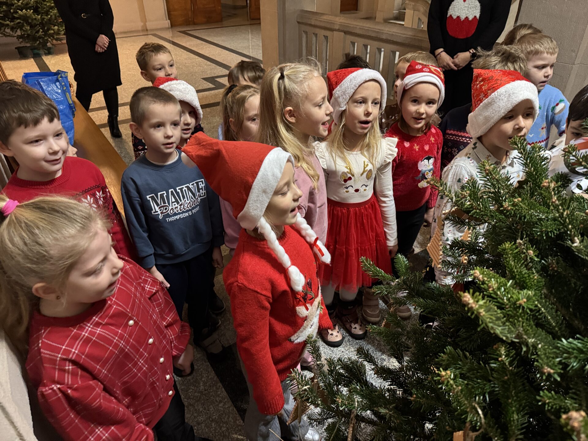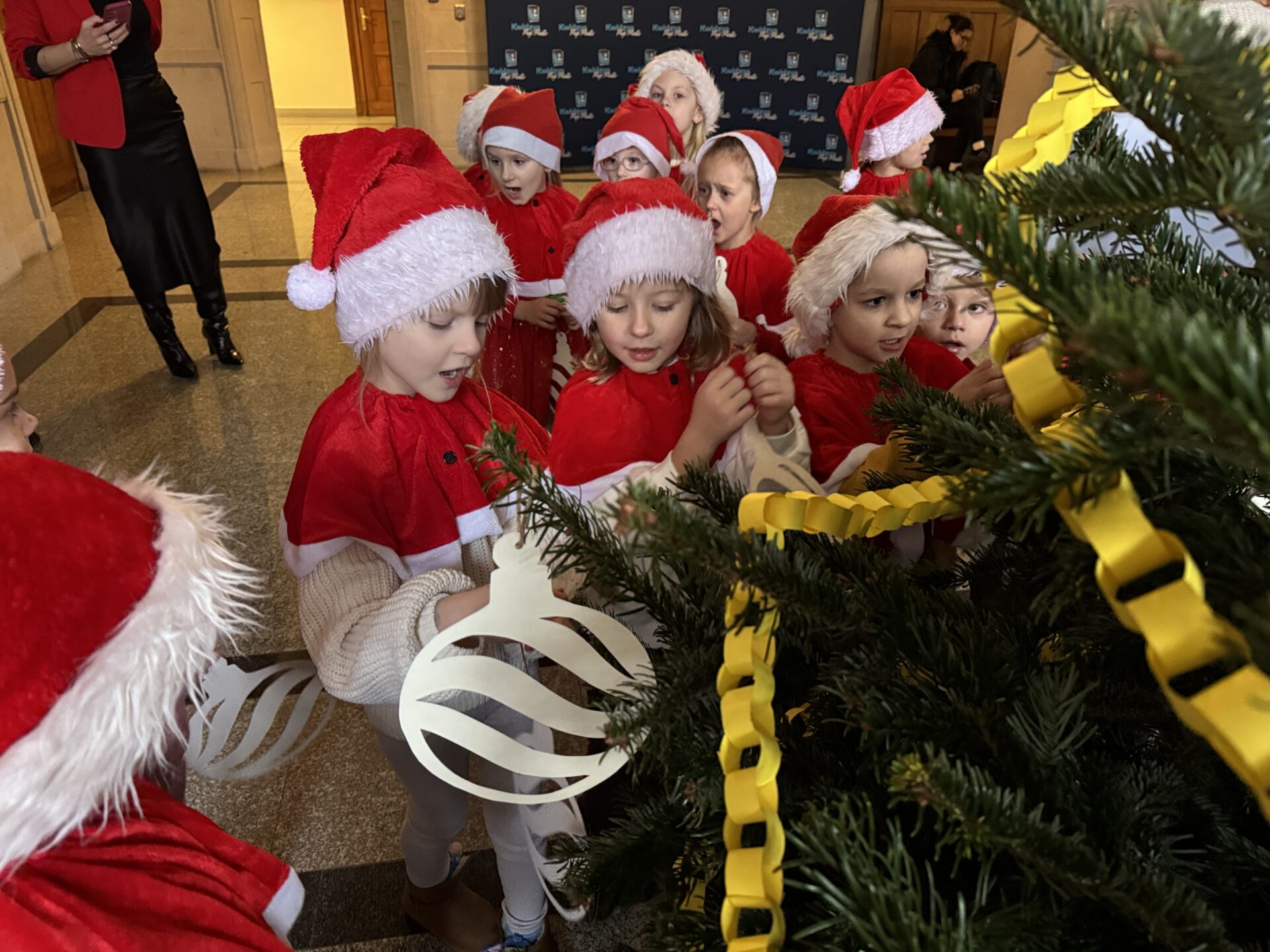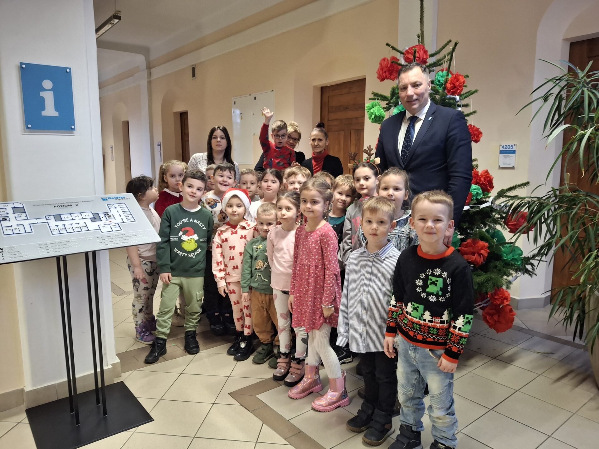Dzieci z kwidzyńskich przedszkoli odwiedziły urząd, aby – zgodnie z piękną, wieloletnią tradycją – udekorować znajdujące się w nim choinki własnoręcznie przygotowanymi kolorowymi ozdobami.