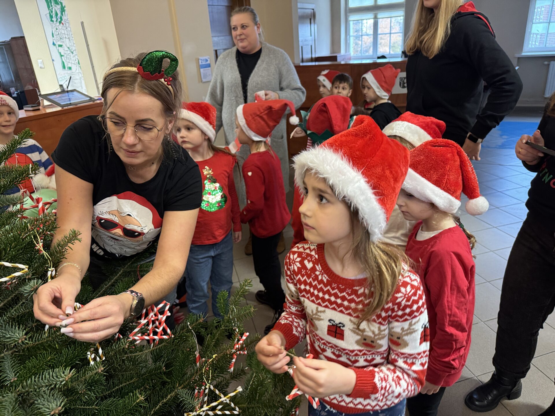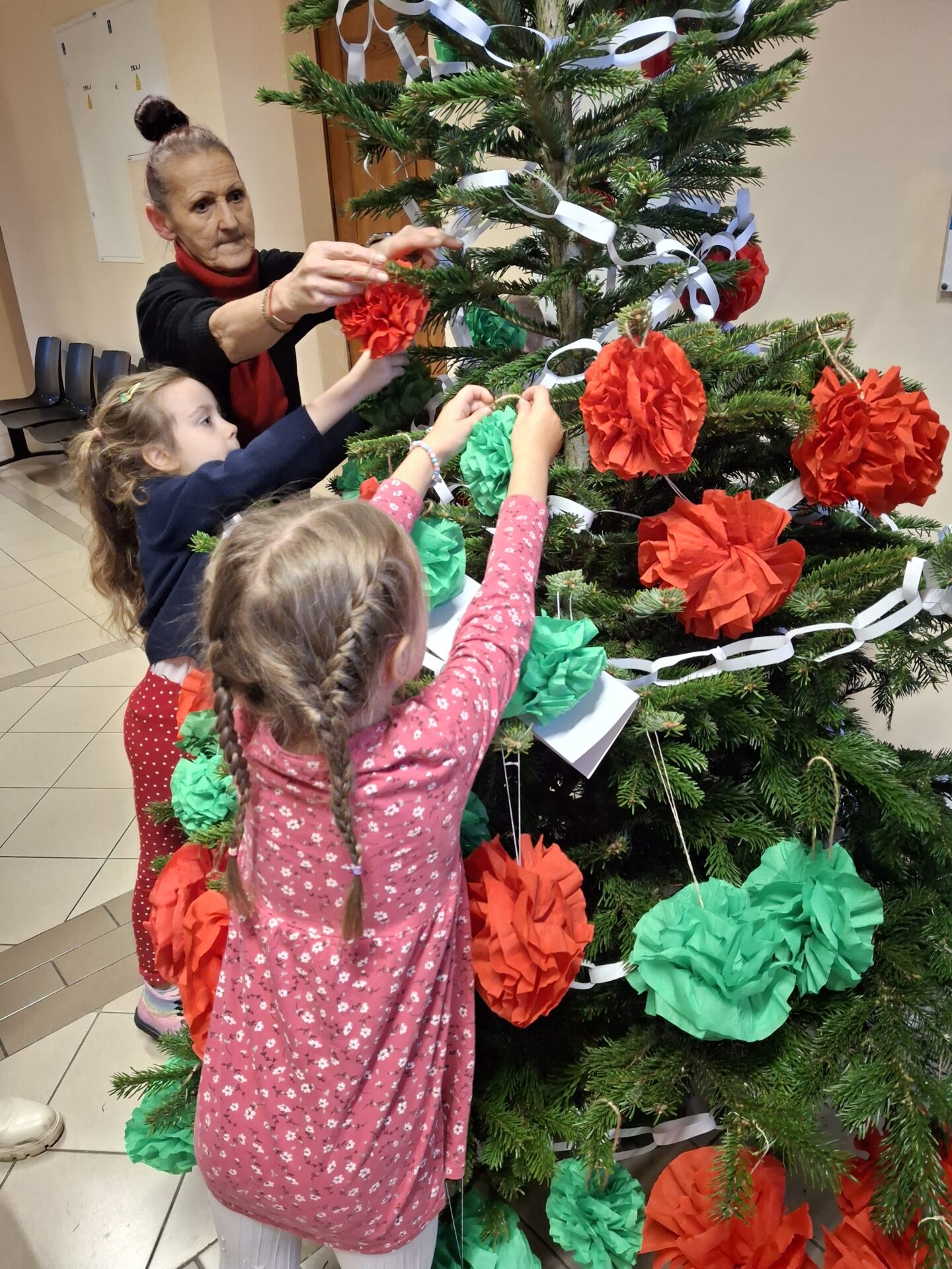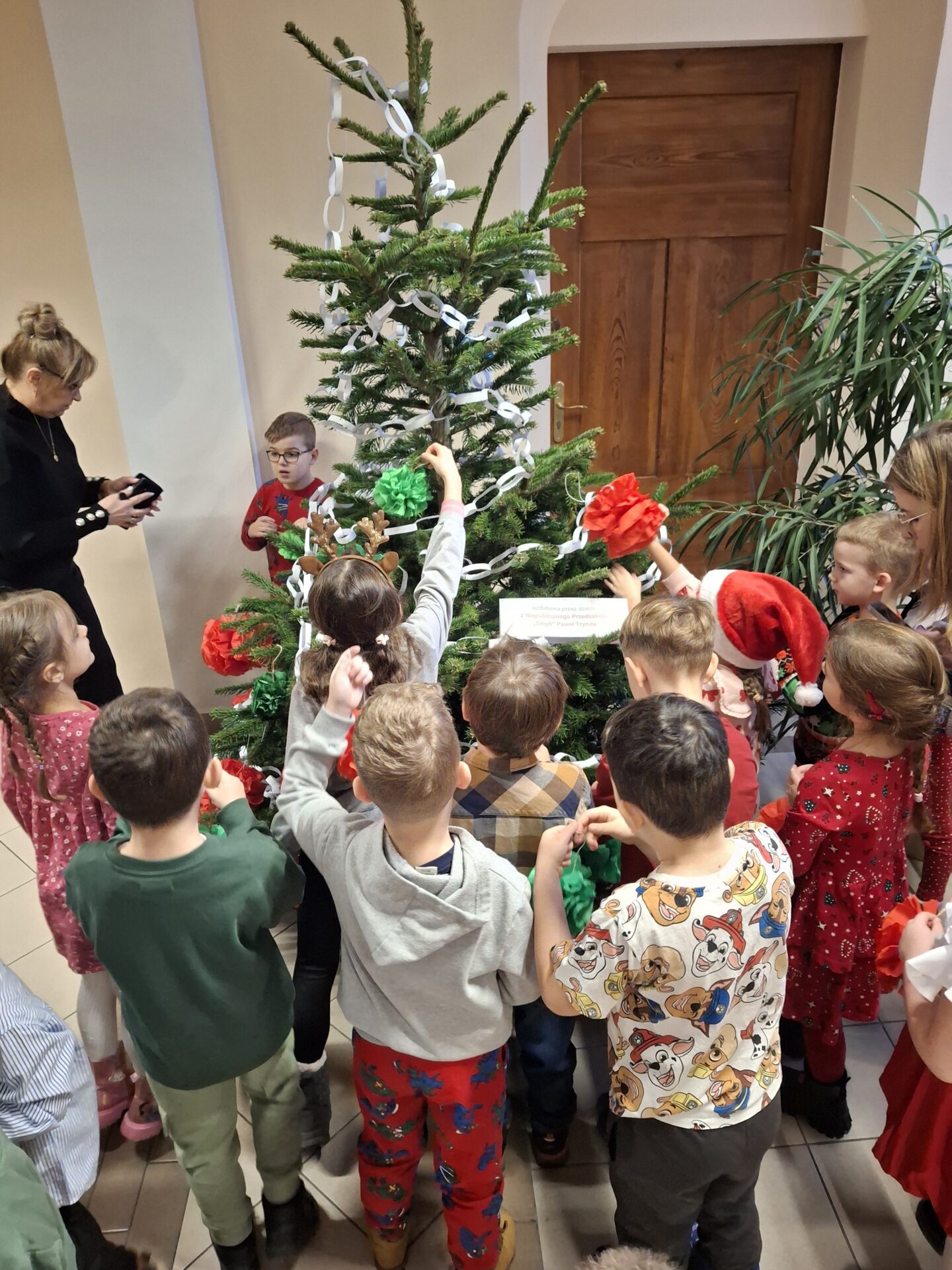 Maluchy, wraz ze swoimi wychowawczyniami, od kilku tygodni tworzyły świąteczne dekoracje: papierowe łańcuchy, barwne bombki, gwiazdki oraz błyszczące zawieszki. Każda z nich była wyjątkowa – tak, jak uśmiechy na twarzach dzieci.