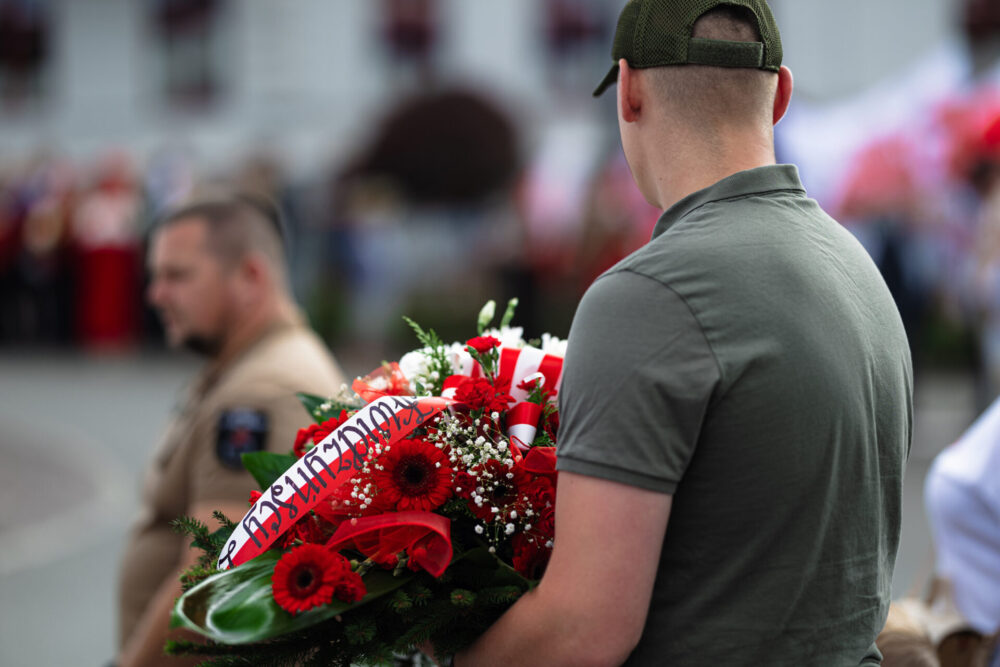 Punktualnie o godzinie „W” zawyły syreny, a zebrani uczcili minutą ciszy pamięć Powstańców. Następnie złożono kwiaty pod pomnikiem, oddając hołd tym, którzy walczyli o wolność Ojczyzny.