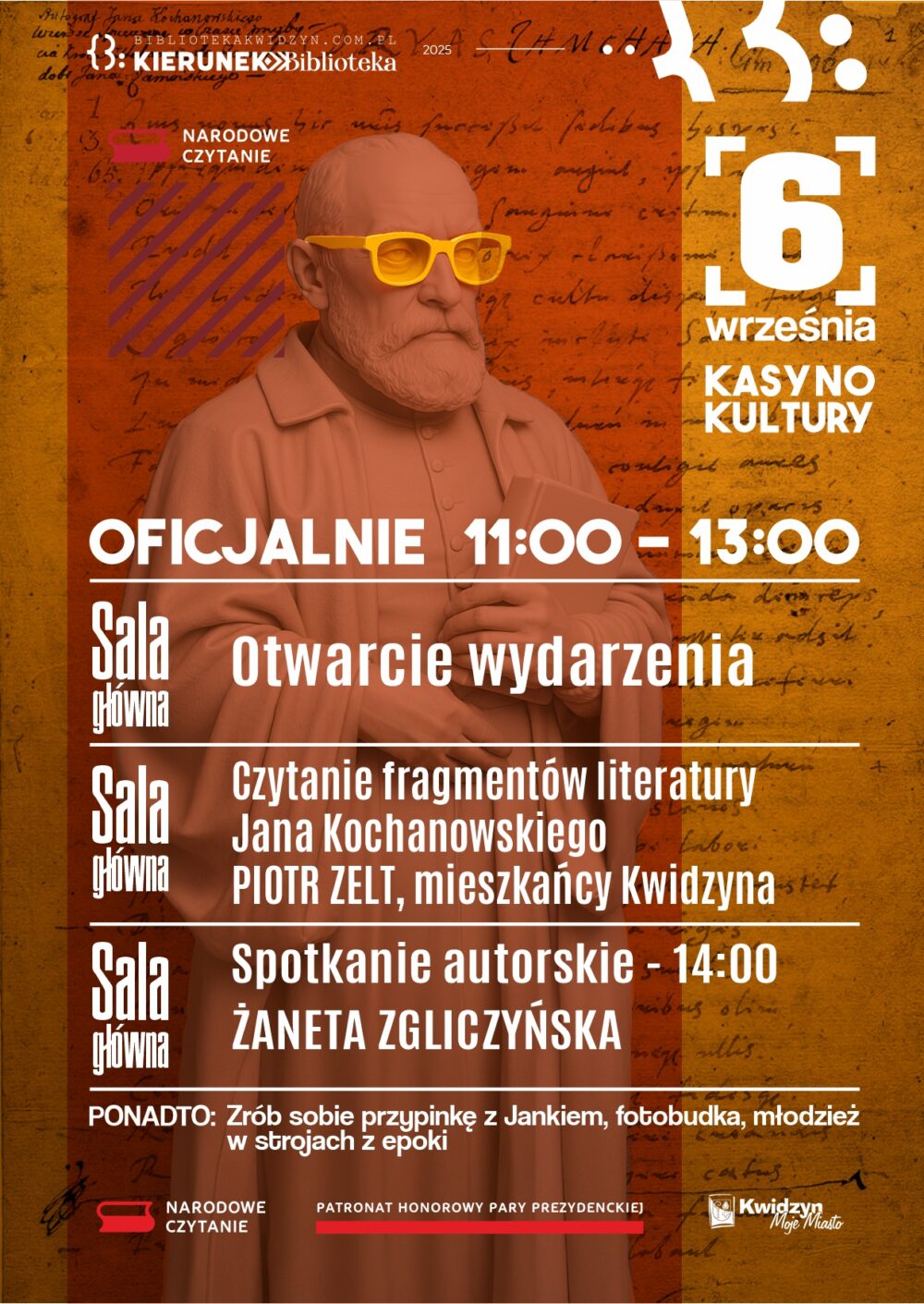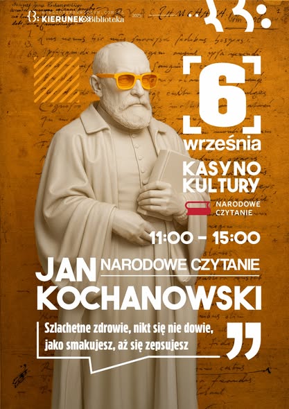 Serdecznie zapraszamy 6 września do Kasyna Kultury na kolejne Narodowe Czytanie! Bohaterem tegorocznego wydarzenia będzie Jan Kochanowski najwybitniejszy polski poeta epoki renesansu, nazywany „ojcem poezji polskiej”.