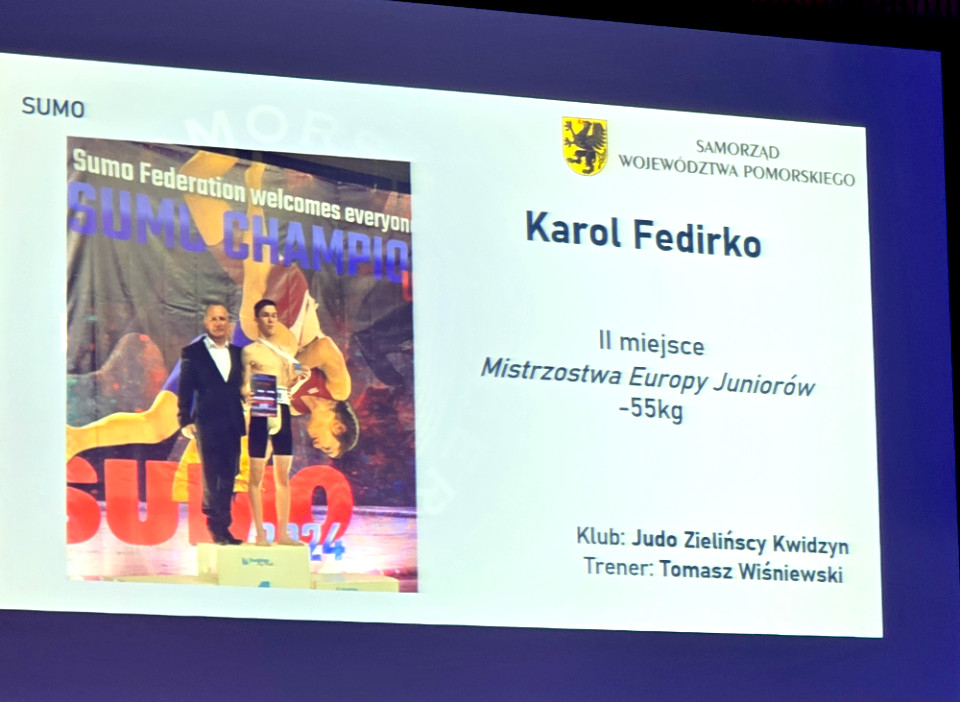 Karol Fedirko – wicemistrz Europy w SUMO znalazł się w gronie Pomorskich Stypendystów Sportowych! To wyjątkowe wyróżnienie i wsparcie finansowe przyznawane przez Marszałka Województwa Pomorskiego – Mieczysława Struka dla sportowców, którzy osiągnęli sukcesy na arenie krajowej i międzynarodowej. Uroczysta gala odbyła się 24 marca w obecności przedstawicieli władz województwa pomorskiego.