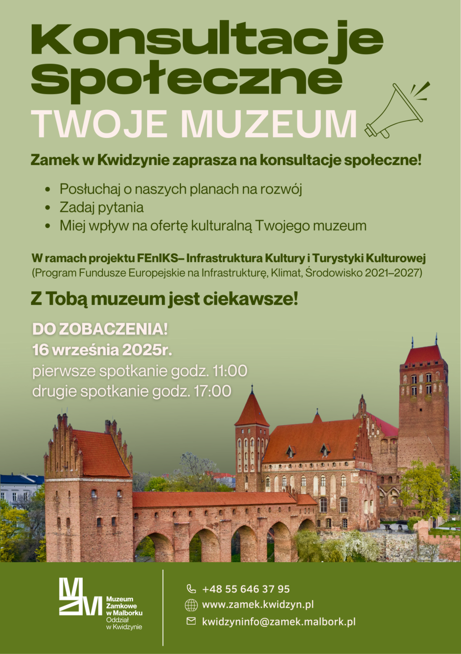 Już 16 września (wtorek) na Zamku w Kwidzynie odbędą się konsultacje społeczne, których celem jest poznanie opinii odwiedzających zamek oraz mieszkańców Kwidzyna na temat nadchodzących zmian.