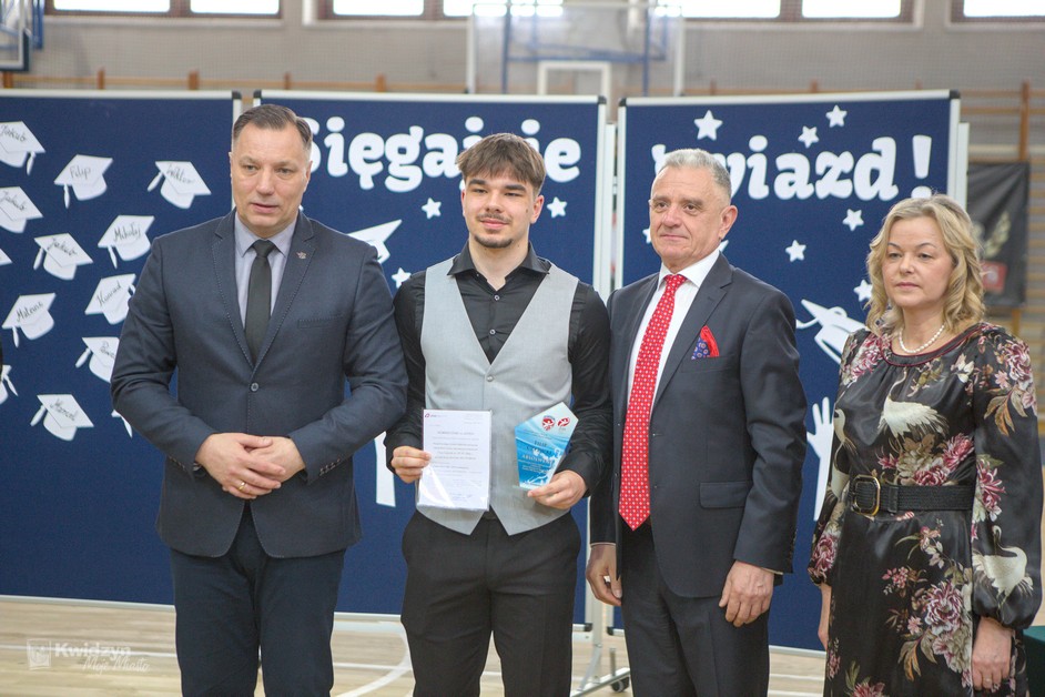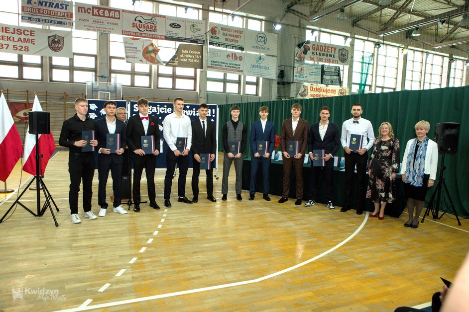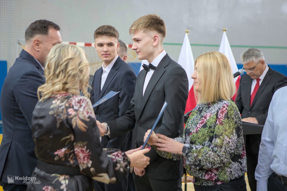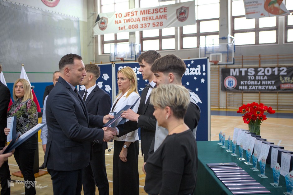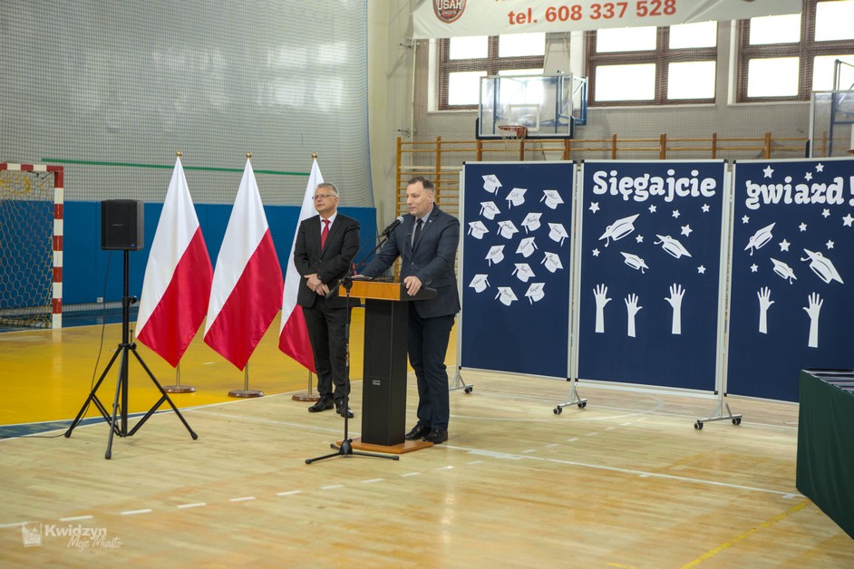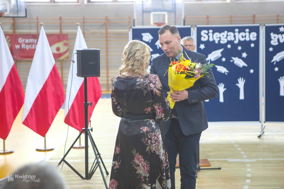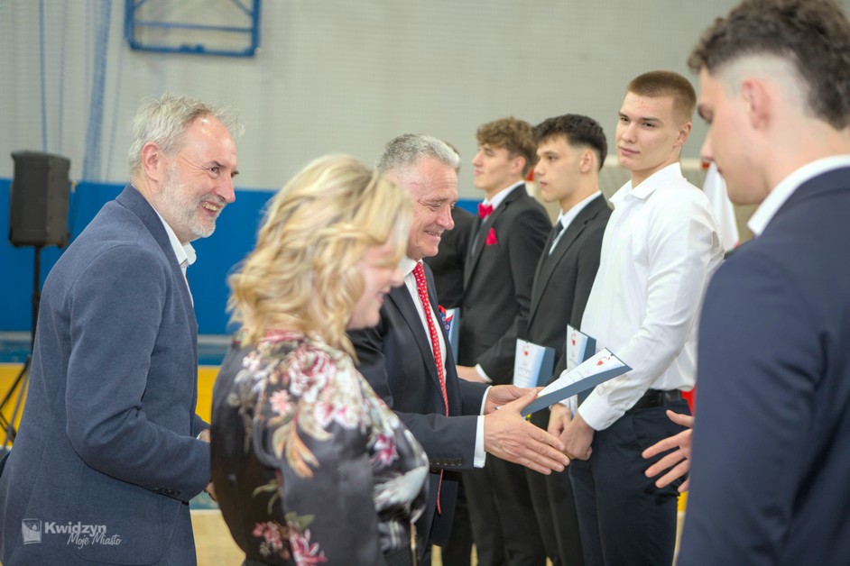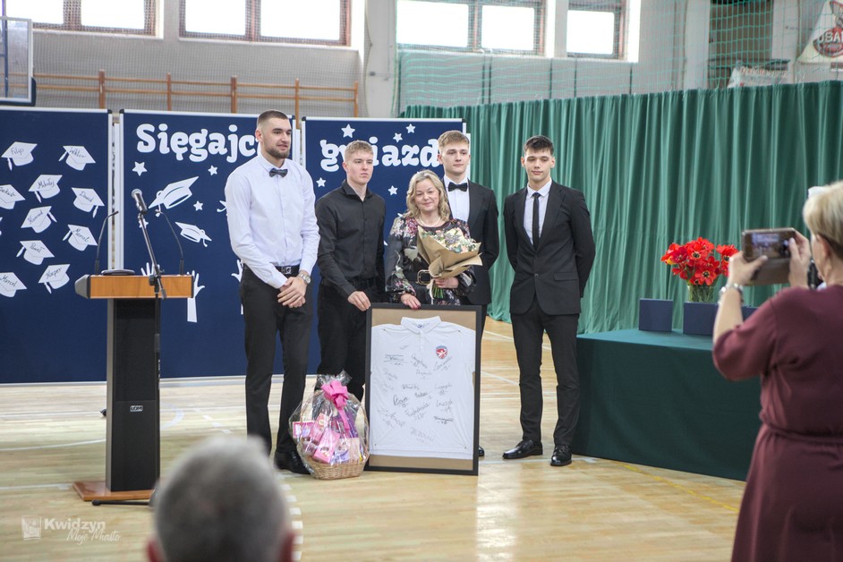 Gratulacje absolwentom złożył również Burmistrz Kwidzyna, doceniając ich wysiłek, pasję i determinację. Wraz z wicestarostą Andrzejem Zwolakiem i dyrektorem sportowym Robertem Majdzińskim wręczyli absolwentom dyplomy ukończenia szkoły i pamiątkowe statuetki. Nie zabrakło wzruszających akcentów muzycznych, a uczniowie przygotowali dla swoich nauczycieli niespodzianki – koszulki z własnymi autografami.