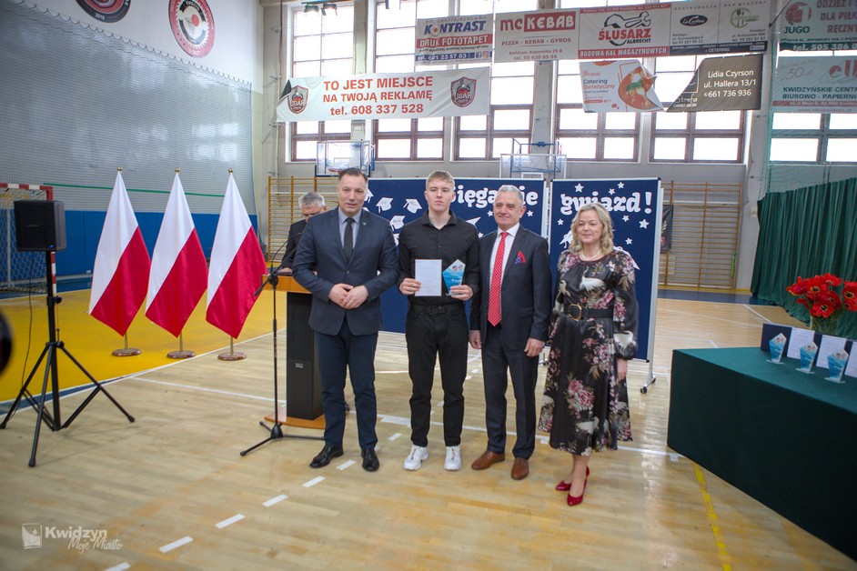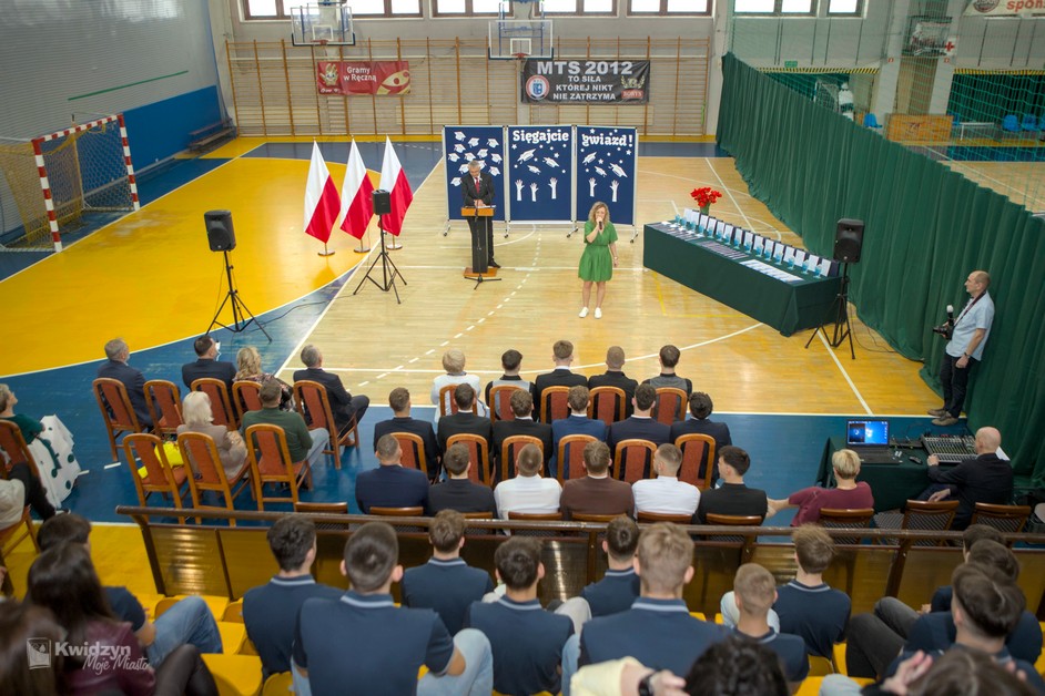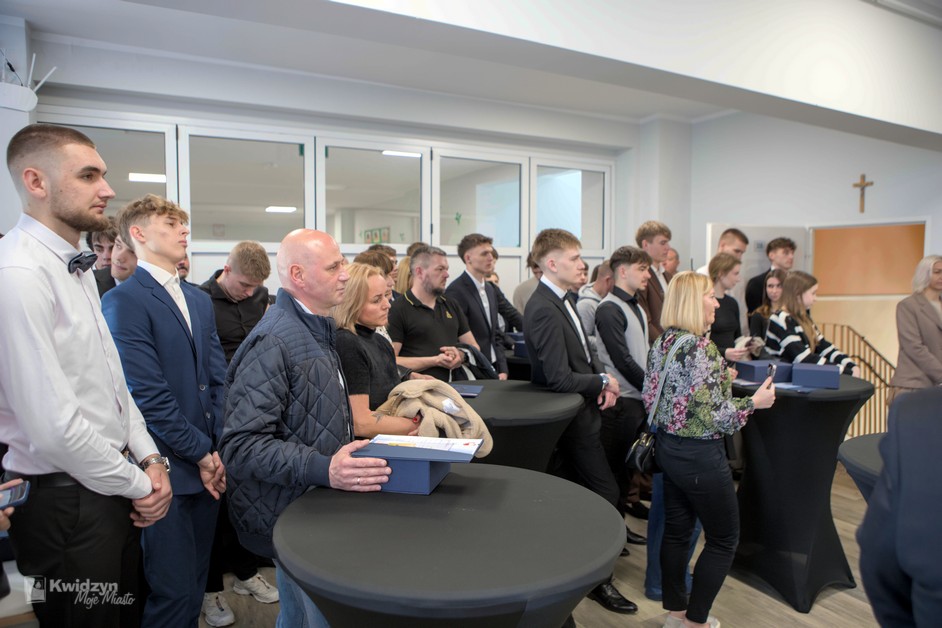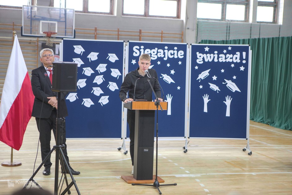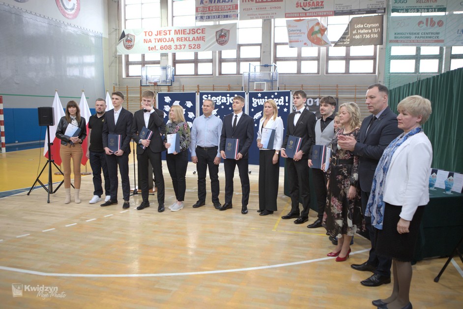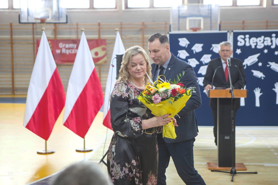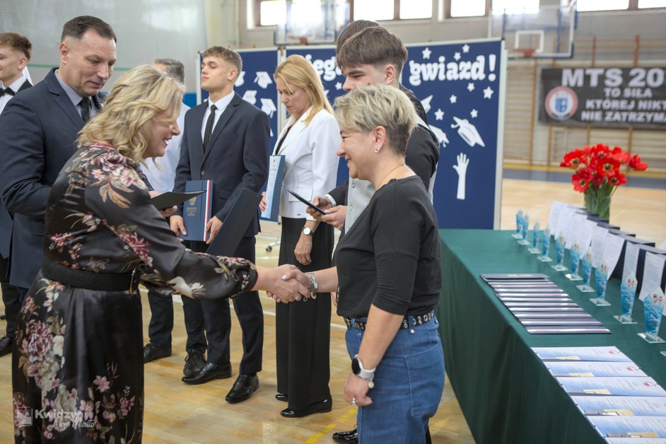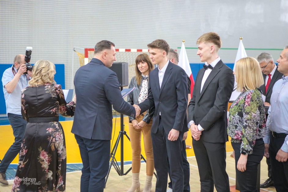 Gratulacje absolwentom złożył również Burmistrz Kwidzyna, doceniając ich wysiłek, pasję i determinację. Wraz z wicestarostą Andrzejem Zwolakiem i dyrektorem sportowym Robertem Majdzińskim wręczyli absolwentom dyplomy ukończenia szkoły i pamiątkowe statuetki. Nie zabrakło wzruszających akcentów muzycznych, a uczniowie przygotowali dla swoich nauczycieli niespodzianki – koszulki z własnymi autografami.