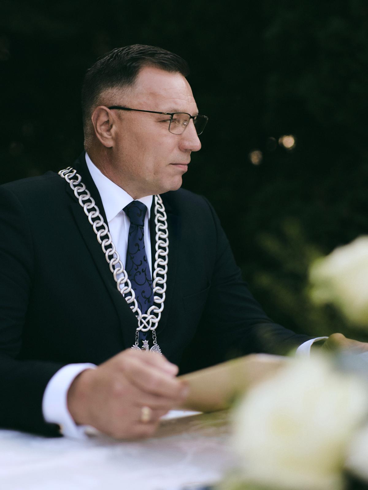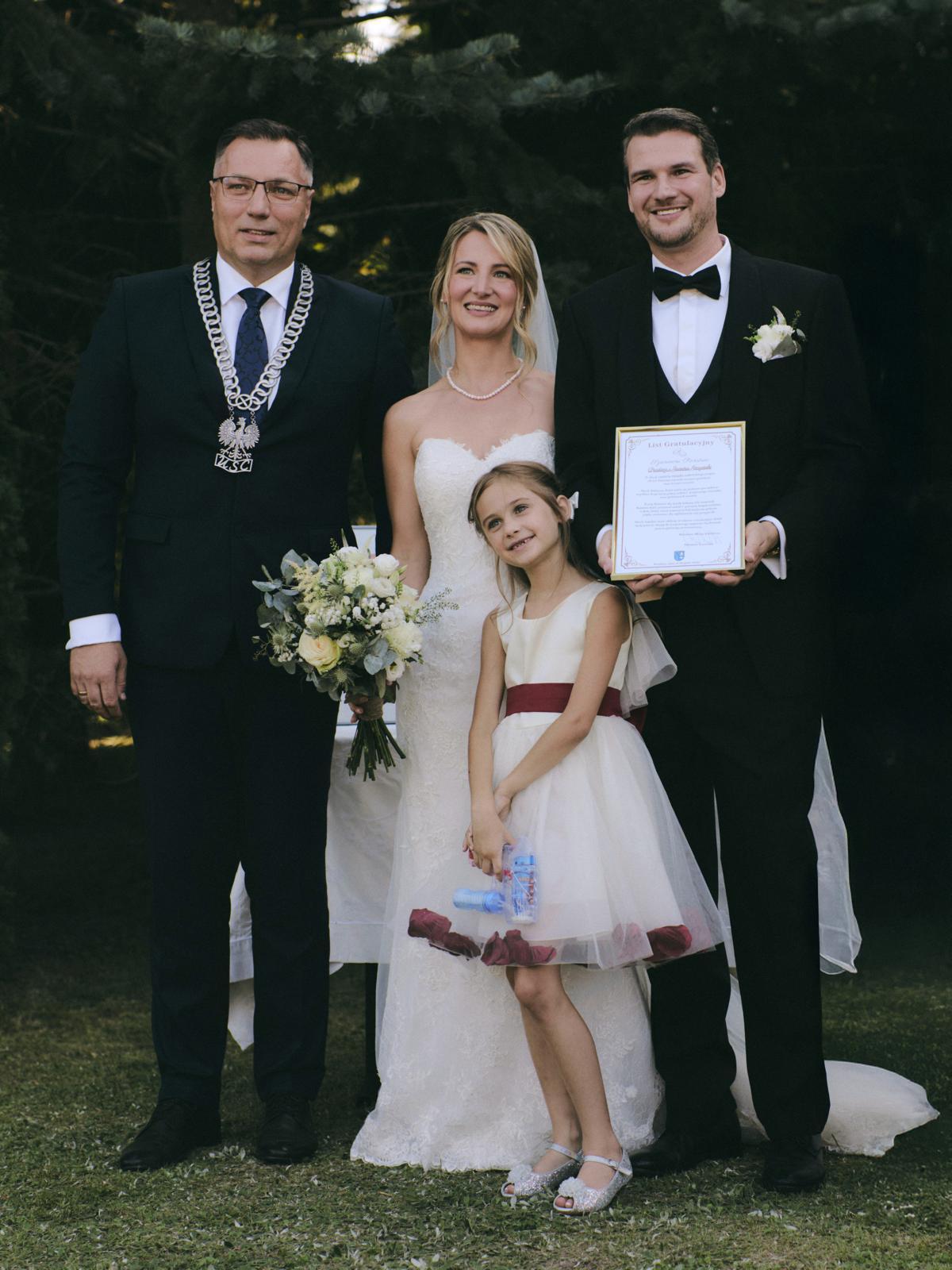 W wyjątkowej scenerii Białego Dworu odbyła się piękna ceremonia ślubna, podczas której Burmistrz miał zaszczyt udzielić ślubu młodej parze – Ninie i Bartkowi.