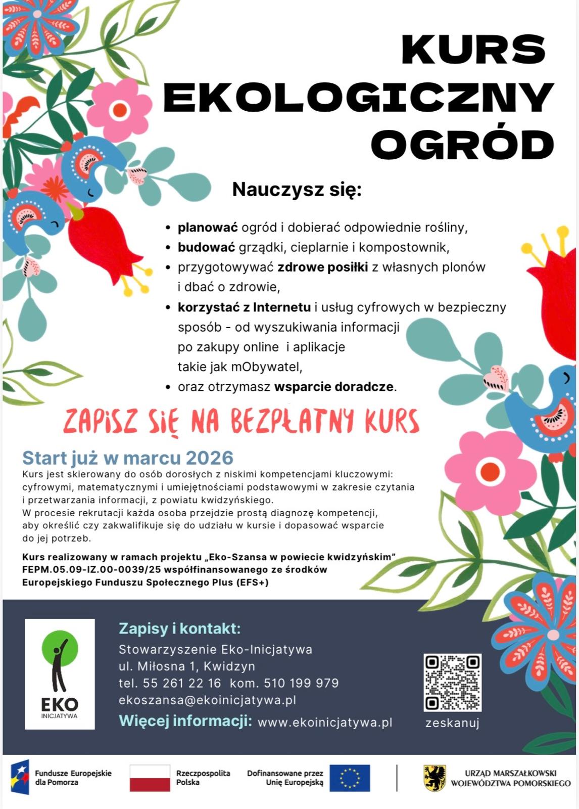 Jeśli myślisz, że ten kurs jest dla Ciebie, skontaktuj się z Eko-Inicjatywą tel. 55 261 22 16, ekoszansa@ekoinicjatywa.pl.