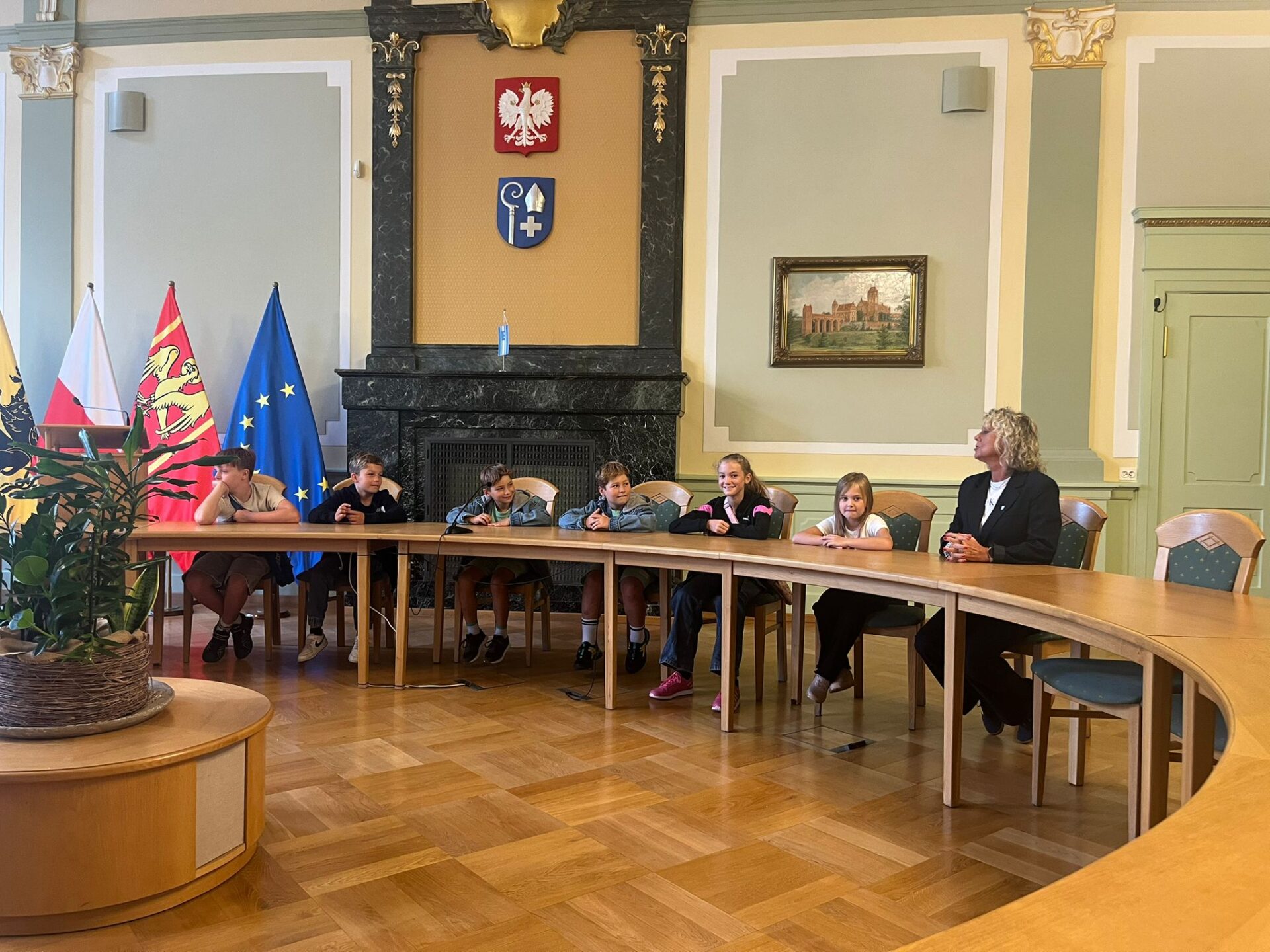 Podczas spotkania  z zastępcą Burmistrza ds. Społecznych Panią Jolantą Ważną dzieci miały okazję przyjrzeć się pracy Urzędu Miejskiego z bliska. Z dużym zaangażowaniem  zadawały wiele pytań dotyczących obowiązków Burmistrza oraz pracy urzędników, a także planów rozwoju miasta.