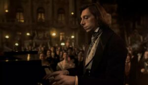 Paryż, 1835 rok. Fryderyk Chopin ma 25 lat i jest ulubieńcem paryskich salonów, arystokracji i króla Francji. Żadne znaczące wydarzenie nie może odbyć się bez jego udziału. Widzimy go podczas nocnych eskapad i afterparty po koncertach. Zazwyczaj pełnego energii, przykrywającego chorobę żartem. Jego życie ucieka, jednak Fryderyk nie zwalnia. Komponuje arcydzieła, także na zamówienie. Ze względu na zobowiązania finansowe udziela lekcji gry na fortepianie. Przyjaciele go podziwiają, a kobiety pragną.