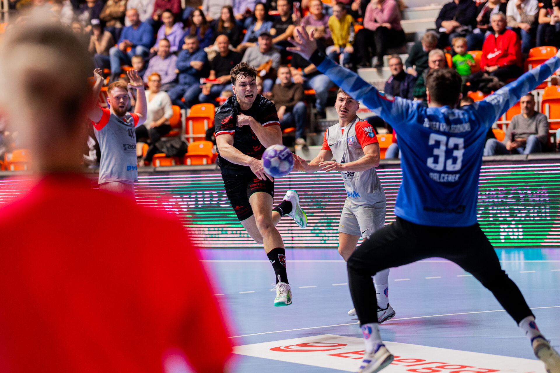 Wydawało się, że mecz jest już rozstrzygnięty, jednak podopieczni trenera Michała Prątnickiego zdecydowali się na jeszcze jeden zryw. Po serii 4 trafień z rzędu goście zmniejszyli istniejące straty do zaledwie 2 bramek – 28:26. Gol Igora Malczak przerwał jednak dobrą passę gości, a kolejne trafienia Mateusza Kosmali oraz Wiktora Jankowskiego ponownie dały gospodarzom bezpieczną przewagę – 31:26. Czerwono-czarni nie wypuścili jej już do samego końca, odnosząc pierwsze zwycięstwo na swoim terenie i zagarniając cenny komplet punktów.